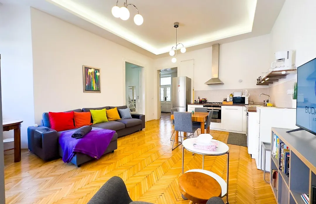 Ein Herd und ein Geschirrspüler sind in einer voll ausgestatteten Küchenzeile dieser Unterkunft vorhanden. Zu den nahegelegenen U-Bahn-Stationen gehört die U-Bahn-Station U-Bahn-Station Blaha Lujza tér, die 350 m von diesem 100 m² großen Apartment ist.